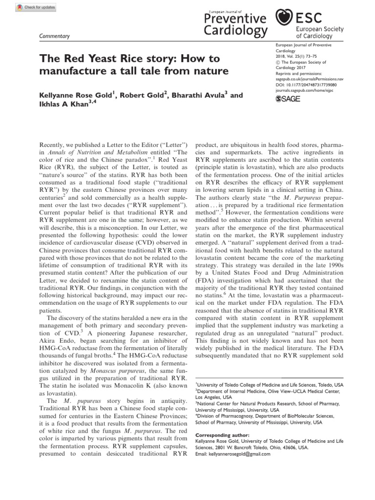 The Red Yeast Rice Story PDF Statin Dietary Supplements